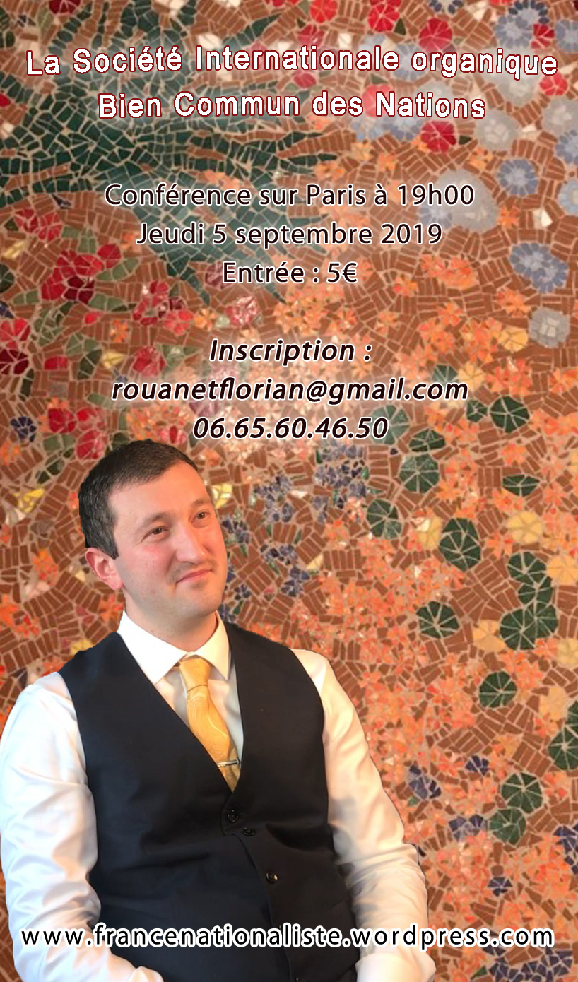 La semaine prochaine, et plus exactement le jour de mon anniversaire, se tiendra la conférence suivante « Pour une Société Inter-Nationaliste ». Il sera question de nation, de civilisation, d’Europe, d’Empire, de mondialisme et de Chrétienté…
