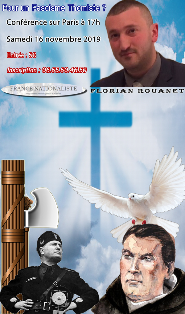 Mots-clés : unité italienne, accords du latran, conversion de Benito Mussolini, humanisme politique de saint Thomas d’Aquin, notion de « l’homme nouveau », légitimité de la force, intégralisme politique, Cité universelle et impériale, autorité et hiérarchie, principes corporatifs, socialisme aristocratique, État républicain et monarchique, dictature populaire, dite démocratie-chrétienne, révolution conservatrice, tradition et modernité, système dyarchique, national-socialisme allemand, Louis Le Carpentier, etc.