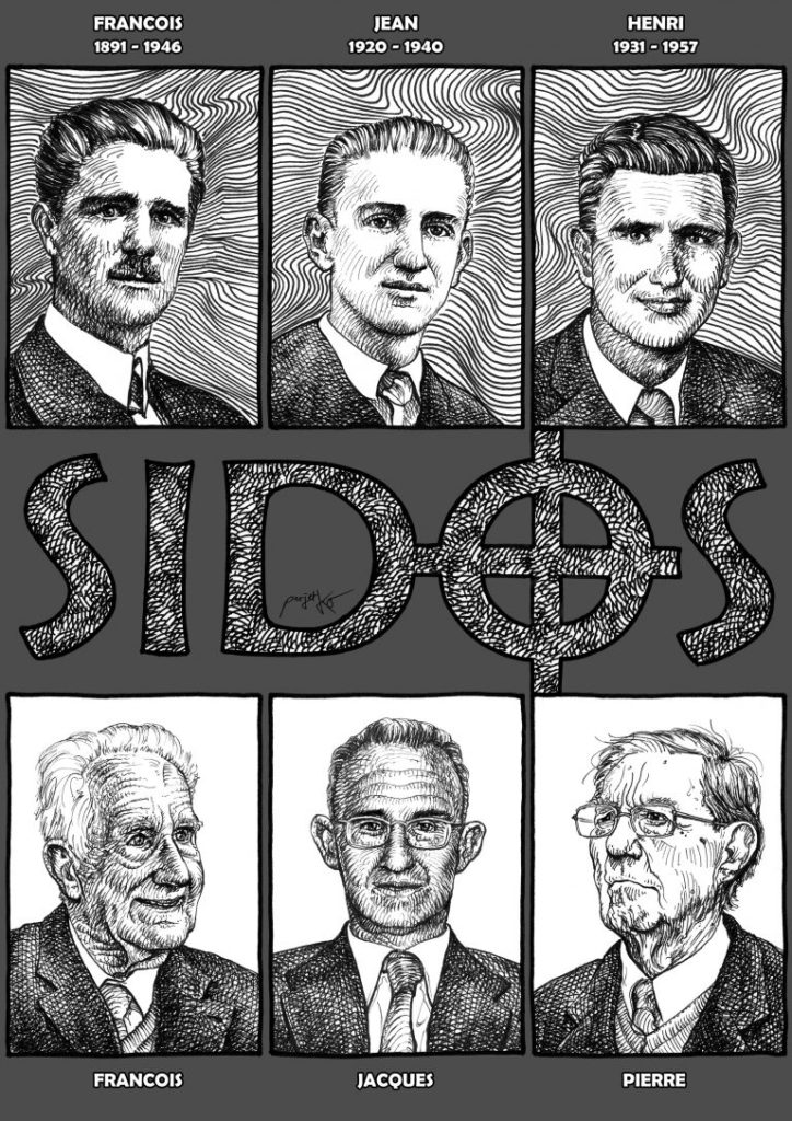 A l’occasion de l’anniversaire à Pierre SIDOS, 93 ans, fondateur de l’Oeuvre Française. Un tableau mettant à l’honneur cette famille de héros exemplaires : François, Jean, Henri, François, Jacques et donc Pierre SIDOS, mémoire vivante du combat nationaliste. Bonne semaine à tous,