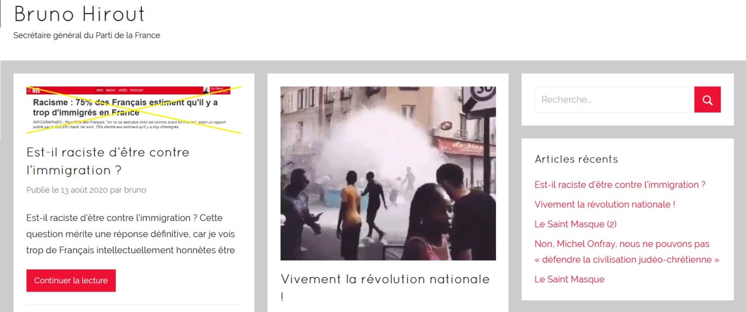 Notre milieu est un tas de ruines où la nullité, la médiocrité et le narcissisme rivalisent de génie. Mais il y a tout de même quelques derniers hommes de valeur, qui sont assez sérieux pour conserver une dignité, une discrétion et une modestie élémentaires tout en ayant quelques lettres et des connaissances minimales. Bruno Hirout, … Lire la suite de Bruno Hirout, secrétaire général du Parti de la France, a un nouveau site