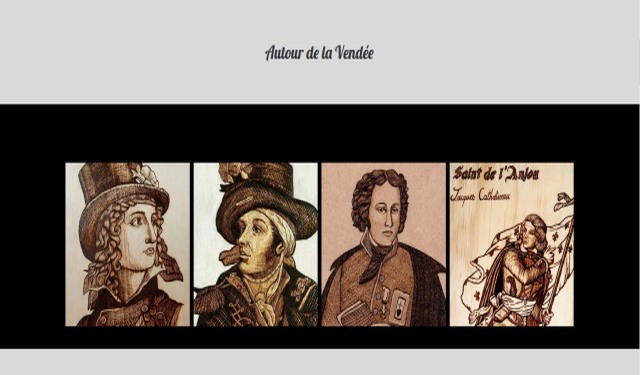 Elle avait réalisé et mis à disposition sur son site e-commerce, entre autres choses, différents chefs vendéens en pyrogravure sur bois afin de nous éblouir. Cette catégorie de portraits nous communique leurs charismes, la force d’âme au premier chef, le courage et la sainteté. D’où l’utilité d’en posséder un. En espérant qu’à terme, elle arrive à portraiturer les héros de la Vendée militaire qui manquent encore à l’appel.