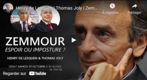 Temps de lecture~4 min Débat à propos de « Zemmour: espoir ou imposture ? » entre Henry de Lesquen et Thomas Joly Notre réponse : La fibre de ce débat nous fait penser à celui réalisé entre Youssef Hindi et Julien Rochedy, précédemment analysé par nos soins dans une exégèse critique partagée (zemmourisme et conspirationnisme). … Lire la suite de Débat entre Henry de Lesquen et Thomas Joly