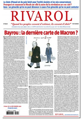 Conformiste, Bayrou l’est également dans son européisme béat alors même que l’Europe de Bruxelles est un désastre pour notre nation. Son européisme va de pair avec son sionisme et sa soumission au lobby du CRIF. Il n’a pas eu un mot jusque-là pour dénoncer le génocide à Gaza, lui que l’on dit pourtant si chrétien, si humaniste, si proche des hommes. Et il ne faut pas oublier que c’est à lui qu’on doit la révocation définitive de Vincent Reynouard de l’Education nationale. Le 23 avril 1997, alors qu’il est encore pour quelques semaines rue de Grenelle, François Bayrou signe le décret de radiation du jeune professeur de mathématiques, alors en poste à Honfleur, âgé de 28 ans et déjà père de deux enfants, car on a retrouvé, après dénonciation, dans un ordinateur du lycée, une documentation révisionniste dont il était l’auteur. Cette révocation sans solde d’un jeune père de famille, alors même qu’il n’a tenu aucun discours révisionniste pendant ses cours à ses élèves, qui met alors le jeune révisionniste dans une situation matérielle dramatique, l’obligeant à demander l’asile chez l’habitant, ne pose aucun problème de conscience au démocrate-chrétien Bayrou. Tout cela est à garder en mémoire.RESTE que cette nomination est un terrible aveu de faiblesse et d’impuissance d’un Macron complètement démonétisé, y compris à l’international. Bayrou est son dernier fusible. Si celui-ci devait aussi sauter, cela mettrait le président en première ligne et le placerait dans une position encore plus précaire et inconfortable. Cela dit, nous ne sommes pas de ceux qui croient à une démission du chef de l’Etat. Une chose est de dissoudre l’Assemblée d’une manière inconsidérée (Chirac l’avait lui-même fait en 1997) et de se retrouver avec une majorité hostile, une autre est de renoncer soi-même à des fonctions aussi prestigieuses que rémunératrices et aux avantages afférents. Hormis De Gaulle, aucun président n’a démissionné sous la Cinquième République. On voit mal pour autant comment l’actuelle crise politique, qui s’assimile désormais à une crise de régime, pourrait être résolue, même avec l’habileté manœuvrière d’un politicien madré et retors comme Bayrou. Surtout que le chômage repart à la hausse (300 000 emplois sont menacés, ce qui est considérable) et que la dette et les déficits publics semblent actuellement hors de contrôle. La Cinquième République qui était marquée jusque-là par sa stabilité, du fait de sa répartition en deux blocs (la gauche et la droite parlementaires), favorisée par le scrutin majoritaire uninominal à deux tours, connaît désormais l’instabilité gouvernementale qui fut celle de la Quatrième et qui précipita sa chute, la faiblesse de l’Exécutif ne pouvant plus actuellement être masquée. Reste à savoir sur quoi débouchera cette crise de régime qui pourrait durer au-delà même de la prochaine présidentielle, qu’elle soit ou non anticipée, et dont rien ne garantit qu’elle permettra de mettre fin à l’instabilité fondamentale de ce régime en décrépitude, tant il est vrai que l’élection du président au suffrage universel, réforme que RIVAROL avait fortement combattue en 1962, n’a fait qu’aggraver la situation en renforçant paradoxalement le régime des partis, en favorisant toutes les formes d’irresponsabilité et de démagogie et en créant des écuries présidentielles dans toutes les formations politiques au détriment du combat des idées, de la doctrine et du simple bon sens. […]