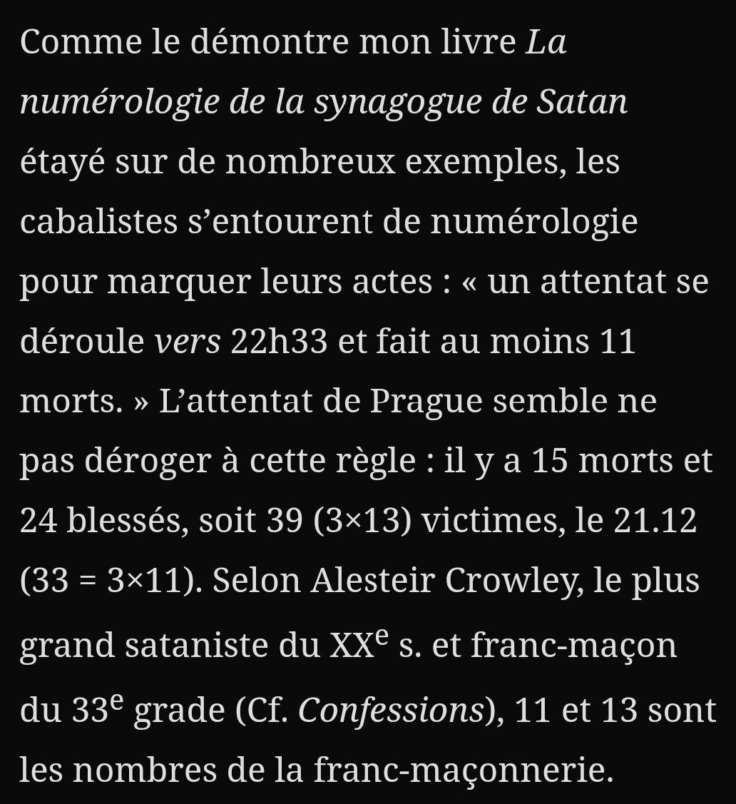 À vouloir tout déchiffrer pour prétendre comprendre le (leur) monde : cela confine à de la pure perte de temps, à l’imprudence, à la superstition et à l’inaction.Dieu permet au diable d’agir jusqu’à certaines limites, et s’en préoccuper de trop fini par faire croire que ces êtres pervers sont des sortes de dieux surpuissants.