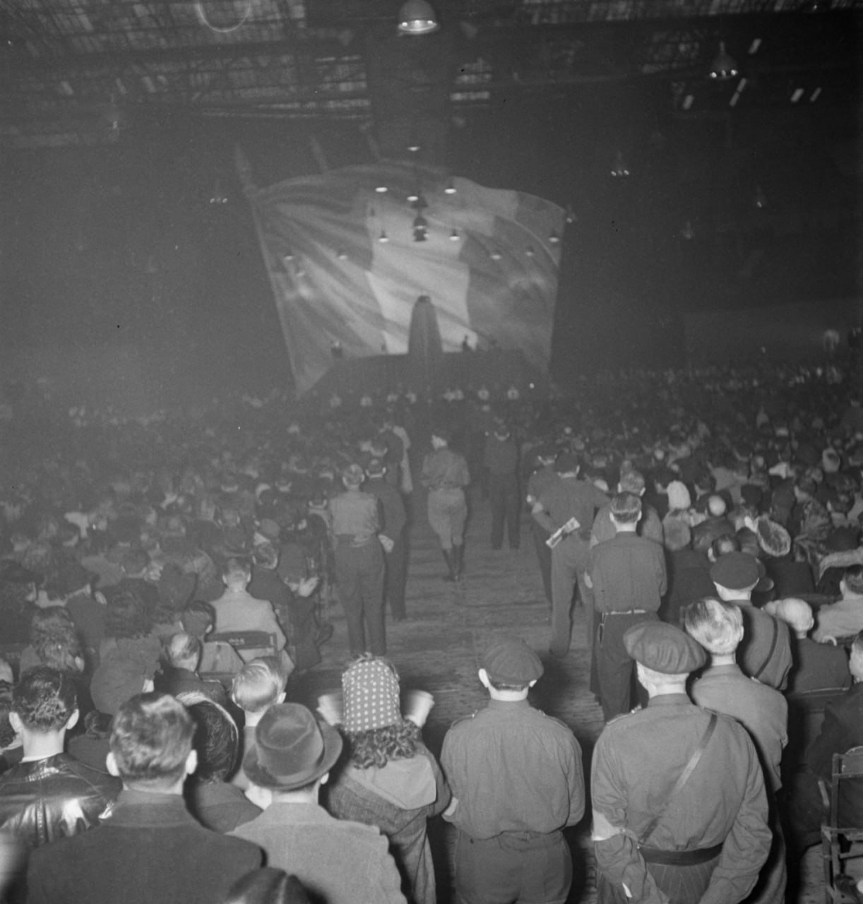 Dès les premiers mots de Joseph Darnand, qui présidait cette manifestation, il parut clairement que la foule vibrante et enthousiaste qui emplissait l’immense nef de la rue Nélaton n’était pas venue simplement pour applaudir des discours éloquents, mais marquer son désir d’une action qu’elle considère désormais comme indispensable.