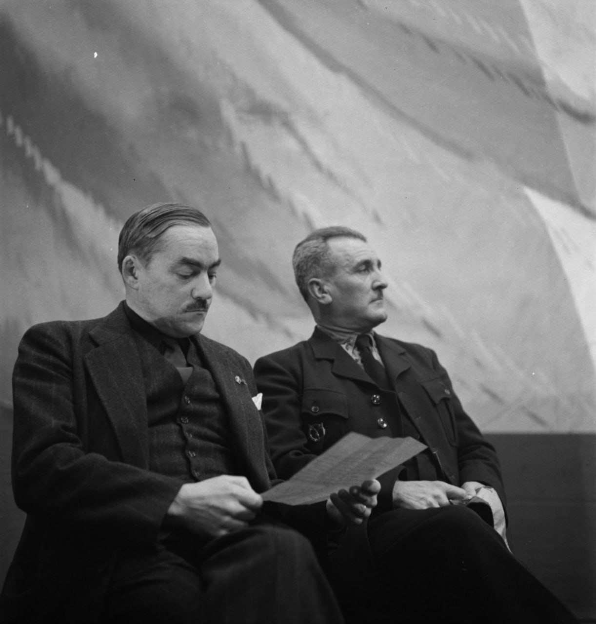 M. Marcel Déat monte ensuite à la tribune. « Notre continent, déclare le chef du R.N.P., est coincé entre deux impérialismes différents, celui du bloc capitaliste anglo-américain, de plus en plus américain et de moins en moins anglais, et le bolchevisme russe. Celui-ci est, d’ailleurs, le fils de celui-là, avec une nuance mongole. Staline veut l’Europe et, quand il l’aura bolchevisée, il s’occupera de ses partenaires actuels qui seront bien incapables de lui disputer notre continent et imposera son hégémonie mondiale, si toutefois l’Europe n’était pas capable de se défendre ».