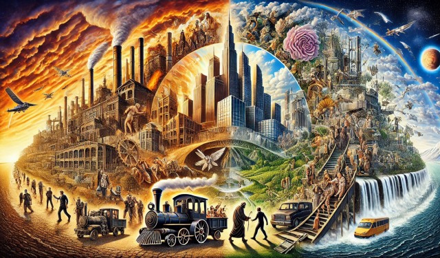 - La sénescence civilisationnelle : comme un homme vieillissant, les nations se figent dans des structures rigides et périmée, perdent leur vitalité et tombent dans une décadence inexorable. La stérilité culturelle, le désintérêt pour l’avenir et l’abandon des traditions signent leur déclin.