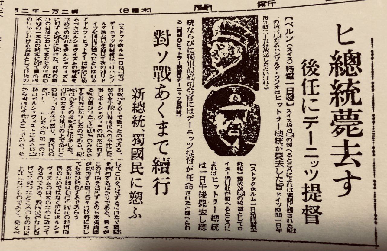 Couverture de la mort d’Hitler par les journaux japonais le 3 mai 1945 :