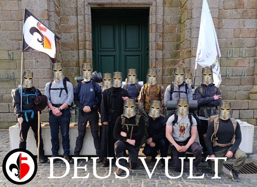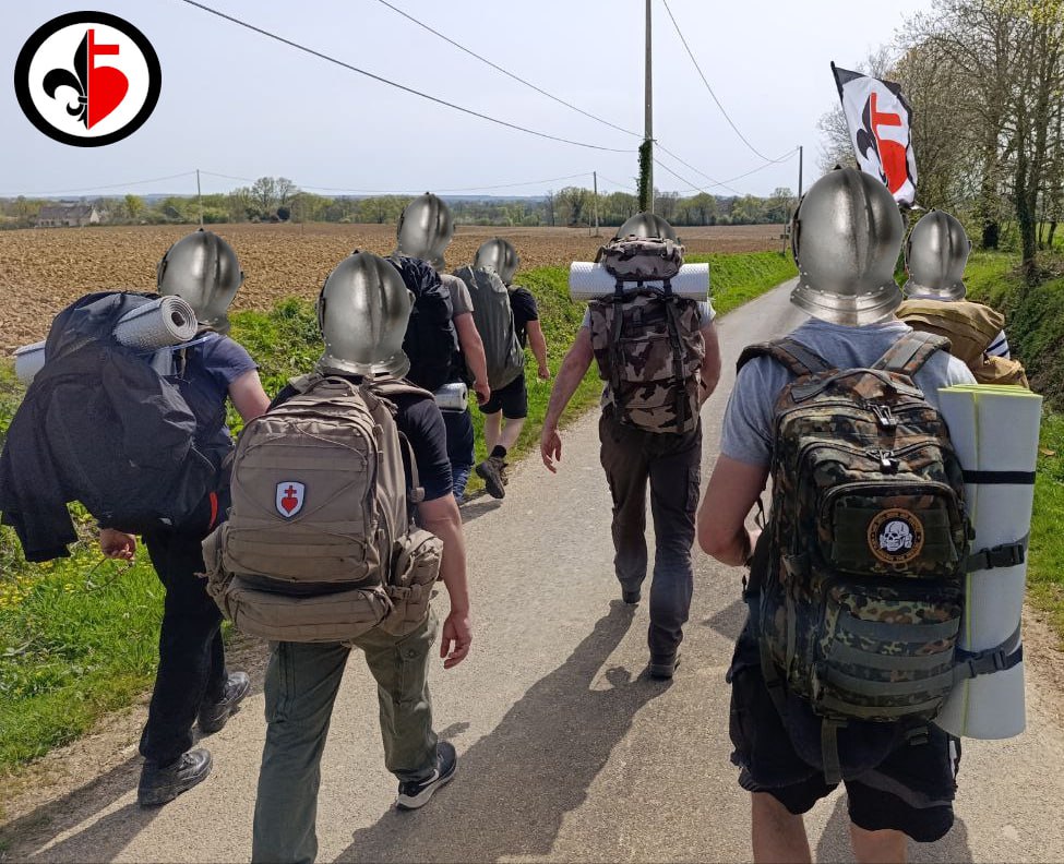 Pèlerinage Deus Vult sous la bannière de saint Longin sur le chemin de saint Jacques de Compostelle : 3 jours de marche, de prières et de chants pendant ce temps de carême et de pénitence.
