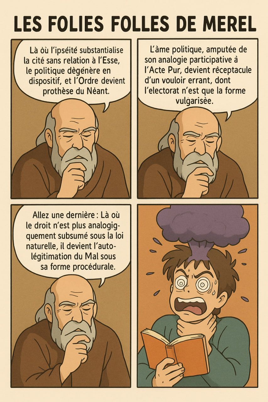 Portée salutaire : sa dialectique dissèque avec rigueur les contradictions entre les thésards au fil du temps. Il révèle au scalpel que « leur thèse » n’est qu’un palimpseste vermoulu, composé d’emprunts irréconciliables : ici un trait guérardien, là une touche sanbornienne, ailleurs le poison belmontien.