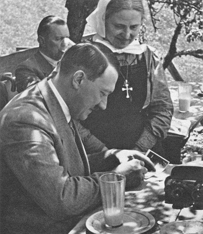 Si vous l’ignorez, je dois vous dire (et peux vous le prouver ici par des documents authentiques) que Hitler fut LE SEUL chef d’État à refuser la séparation de l’Église et de l’État dans son pays, qu’il donna, à même les impôts publics, plus de 500, 000, 000 de marks-or par année aux confessions chrétiennes, qu’il décréta que SEULES les confessions chrétiennes d’Allemagne auraient droit de reconnaissance officielle publique, tandis que les autres confessions ou sectes religieuses ne ressortiraient que du droit privé. (Enseignement de Saint-Thomas-d’Aquin, à Koëln, ou Cologne).